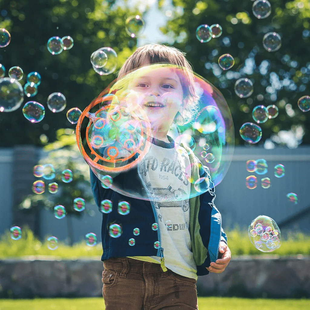 🫧 Shoots 1000+ Bubbles/Minute – The strong motor of this electric bubble gun creates a continuous stream of rich, dreamy bubbles that kids love!